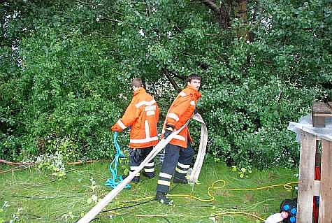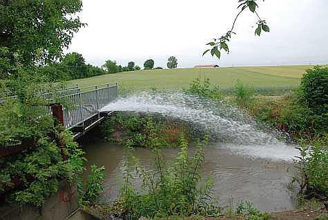 Auf dem Firmengelände sollte ein Sickerbecken die Wassermassen aufnehmen. Jedoch war das Abrinnen des Wassers so schnell nicht mehr möglich, wie der Regen vom Himmel fiel. Daher drohte das gesamte Firmenareal überflutet zu werden. Mit zwei Unterwasserpumpen versucht die Freiwillige Feuerwehr Achau den Pegel des Sickerbecken zu senken. "Die Pumparbeiten dauern noch bis mindestens 16.00 Uhr an. Danach wird eine Lagesprechung die weitere Vorgangsweise zeigen." sagt Einsatzleiter HBI Christian Giwiser.