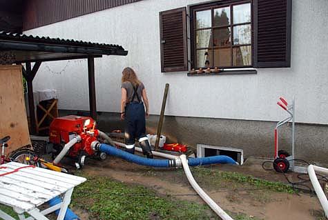 Feuerwehr Gaaden und Hinterbrühl bei Auspumparbeiten