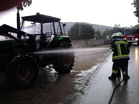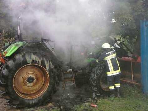 Gleichzeitig wurde auch die Feuerwehr Sulz zum Fahrzeugbrand alarmiert. Diesmal stand ein Traktor in der Kreuzriegelstraße in Vollbrand. Schon bei der Anfahrt zum Einsatzort war die Rauchsäule sichtbar.