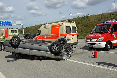 Verkehrsunfall mit eingeklemmter Person auf der A2
