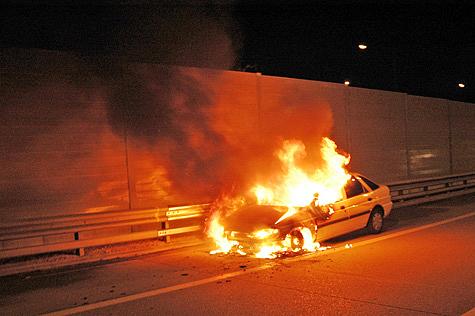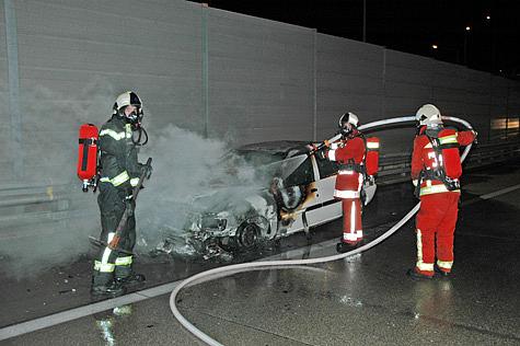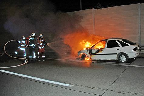 PKW im Vollbrand auf A2 beim Knoten Vösendorf