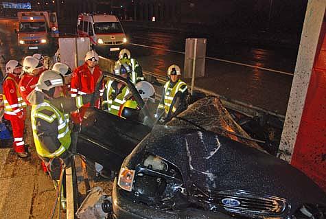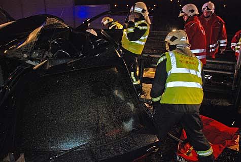 Die Bezirksalarmzentrale Mödling alarmierte einen Zug der Freiwilligen Feuerwehr Wiener Neudorf um 3:22 Uhr zur Menschenrettung auf die Autobahn. Beim Eintreffen des Voraus Wiener Neudorf befand sich das Auto genau zwischen der Autobahn bzw. der Auffahrt. Wobei die Fahrerseite des Unfallfahrzeuges gegen die Lärmschutzwand gedrückt wurde. Sofort wurde mit der Menschenrettung begonnen. Zuerst wurde die Beifahrertüre mit dem hydraulischen Rettungsspreizer geöffnet und entfernt. In weiterer Folge wurde auch die hintere Fahrzeugtüre entnommen damit das Rote Kreuz einen besseren Zugang zum Verletzten hatte. Nach rund 20 Minuten war die eingeklemmte Person durch die Einsatzkräfte der Freiwilligen Feuerwehr Wiener Neudorf aus dem Unfallfahrzeug befreit. Leider konnte der Notarzt nur mehr den Tod feststellen. Das verunfallte Fahrzeuge wurde mit dem Ladekran des SRF Wiener Neudorf auf die Autobahn gehoben ehe es abtransportiert wurde. Während der Rettungsarbeiten war die Auffahrt Altmannsdorf gesperrt. Nach über einer Stunde konnten die 21 Mann mit deren 4 Fahrzeugen wieder ins Feuerwehrhaus einrücken.Bildautor: Herbert Wimmer/Pressestelle BFK Mödling
