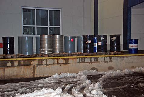 In einem Nebenraum der Halle fand der Atemschutztrupp die ausgelaufene Flüssigkeit und übermittelte die UN-Nummer 2491 an die Einsatzleitung. Hierbei handelt es sich um Äthanolamin und gehört in die Gefahrenklasse 8 – Ätzend.