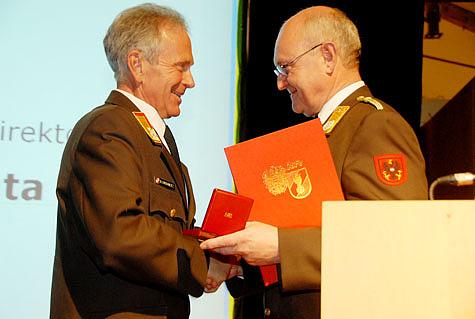 Im Rahmen seiner Ansprache lies er LFR Franz Koternetz eine besondere Ehre zu Teil werden. Franz Koternetz erhielt eine Auszeichnung vom ÖBFV für die hervorragende Arbeit als Bezirks- und Viertelskommandant.