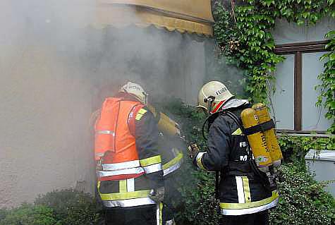 Zu diesem Zeitpunkt standen die 3 Räume des Geschäftslokals in Vollbrand. Daher entschied Einsatzleiter BR Gerald Stöhr einen weiteren Atemschutztrupp samt HD-Rohr zur Brandbekämpfung in das Objekt zu schicken.