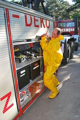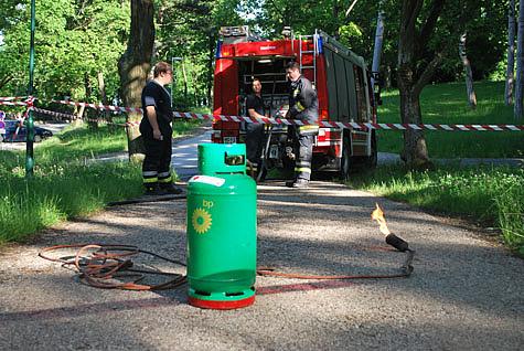 Aufgrund dieser Arbeiten bestand Brandgefahr - daher war permanent ein Hochdruckrohr mit zwei Feuerwehrmännern besetzt.
