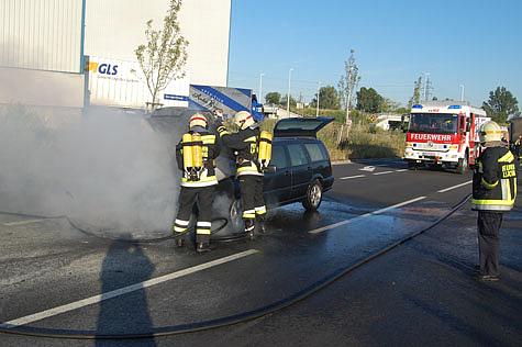 Aus bisher ungeklärter Ursache begann ein PKW im Industriezentrum Süd in der Nähe der Straße 14 zu brennen.