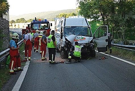 Bei der Ankunft stellte Einsatzleiter LM Herbert Boubela fest, dass ein Iveco Klein-LKW auf der A 21 Fahrtrichtung Westen in der Ausfahrt Hinterbrühl, beladen mit Autoersatzteilen, über der Leitschiene hängend in einem Grünstreifen zwischen Bäumen lag.