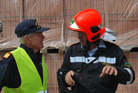 Der Bürgermeister der Gemeinde Hennersdorf Kurt Kremzar und Bezirksfeuerwehrkommandant LFR Franz Koternetz kamen zur Einsatzstelle und überzeugten sich persönlich von der hervorragenden Arbeit der Freiwilligen Feuerwehren.
