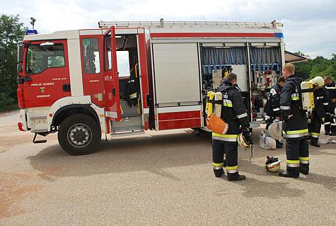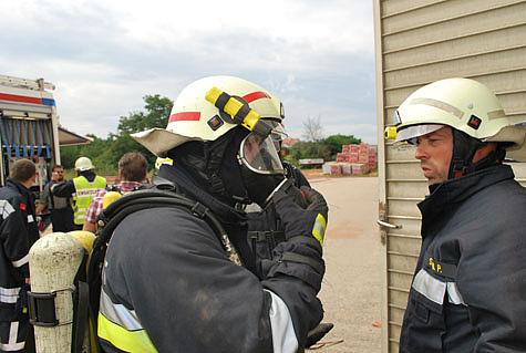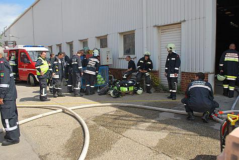 Nach dem Eintreffen der Einsatzkräfte wurde ein Atemschutztrupp mit einem C-Rohr zur Erkundung in das Objekt geschickt. Aufgrund der extrem hohen Hitzeentwicklung im Bereich des Trockenofens, die mehrere hundert Grad Celsius erreichte, musste dieser aber umkehren.