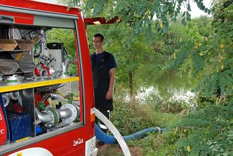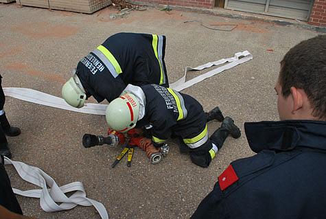 Um die Wasserversorung für die eingesetzten Geräte zu gewährleisten, wurde ein weiterer Hydrant in Einsatz genommen. Dazu musste eine Strecke von rund 400 Metern überwunden werden.