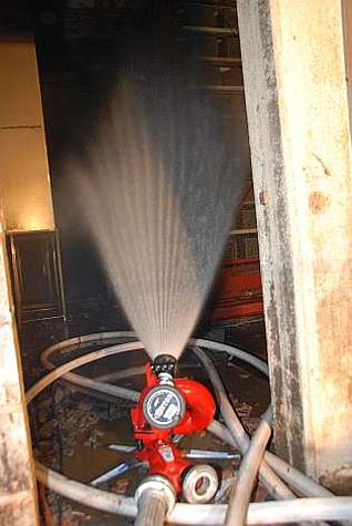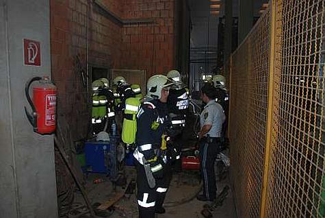 In weiterer Folge wurde ein tragbarer Wasserwerfer in Stellung gebracht und mit Sprühstrahl ein Wassernebel erzeugt, um den Trockenofen zu kühlen. Mit einer Wärmebildkamera wurde laufend die Temperatur kontrolliert.