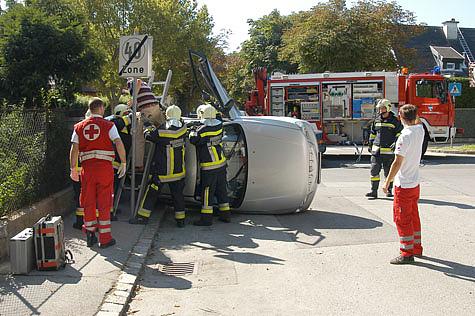 PKW auf die Seite geschleudert - Fahrer eingeschlossen