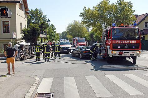 Das Aufstellen des PKWs und die Reinigung der Fahrbahn wurde von der Feuerwehr durchgeführt und anschließend die beiden Unfallfahrzeuge gesichert abgestellt.