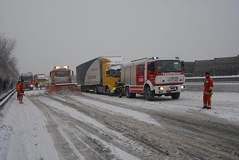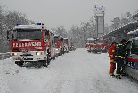 Sämtliche hängengebliebenen Schwerfahrzeuge die ohne Ketten unterwegs waren wurden durch die Feuerwehr abgeschleppt.