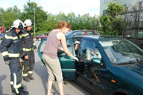 Für eine junge Mutter gab es in den Abendstunden des 6. Juni 2011 eine unerfreuliche Überraschung. Nachdem sie ihren Sohn in den Kindersitz gesetzt hatte und um das Auto gehen wollte, sperrte sich der kleine Maximilian selber im Auto ein. Da sich auch der Autoschlüssel bereits im Fahrzeuginneren befand, rief die Mutter über den Feuerwehrnotruf um Hilfe.