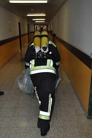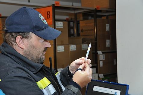 In weiterer Folge wurde entschieden, Messungen im Raum durchzuführen, in welchem die verwendeten Reinigungstücher und Mittel aufbewahrt wurden. Wieder rüsteten sich zwei Feuerwehrmänner mit umluftunabhängigem Atemschutz aus, um Messungen durchzuführen. Dabei konnte ein leicht erhöhter Wert von Ethanol mit Hilfe von Prüfröhrchen in der Luft nachgewiesen werden.