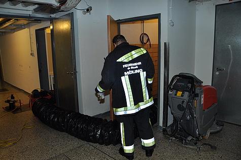 Als erste Maßnahme wurden Messungen im Gang des Kellers mit Messgeräten des Schadstoffberatungsdienstes des Niederösterreichischen Landesfeuerwehrverbandes durchgeführt. Dabei konnte vom Bezirkssachbearbeiter/Schadstoff Ing. Manfred Haslinger keine erhöhten Konzentrationen gemessen werden. Aus Sicherheitsgründen wurde gleichzeitig ein Be- und Entlüftungsgerät aufgebaut, um die Luft im Keller abzusaugen.