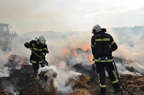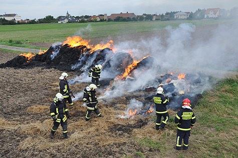 Aus bisher unbekannter Ursache kam es am Nachmittag des 16. August 2011 in Biedermannsdorf zu einem Brand zahlreicher Strohballen.