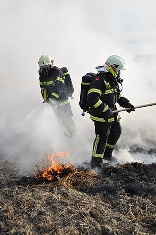 Um 17:22 Uhr alarmierte die Bezirksalarmzentrale die Freiwillige Feuerwehr Biedermannsdorf zum Flurbrand. Bereits wenige Minuten später traf das Vorausfahrzeug, gefolgt vom ersten Tanklöschfahrzeug, an der Einsatzstelle ein. Nach Erkundung der Lage entschied sich der Einsatzleiter HBI Werner Wlaschitz, das bereits in Vollbrand stehende Stroh zu verteilen, und kontrolliert abbrennen zu lassen. In der Erstphase wurden die Ballen von einem Atemschutztrupp durch reine Muskelkraft, mit Hilfe von Feuerhacken zerteilt, und mit Feuerpatschen und einem HD – Rohr abgelöscht. Zeitgleich wurde ein Radlader der Gemeinde Biedermannsdorf organisiert, um die brennenden Rundballen rascher zu verteilen. Nach Ankunft der Baumaschine konnte das brennende Stroh zügig am bereits abgeernteten Feld verteilt werden. Um die hydraulischen Leitungen des Baggers zu schützen, wurden diese durch einen Feuerwehrmann mit einem HD – Rohr gekühlt. Drei Atemschutztrupps durchsuchten das am Feld verteilte Brandgut auf Glutnester. Dazu wurden ein weiteres mal Feuerhacken, Feuerpatschen und ein Rohr eingesetzt. Bereits um 18:35 Uhr konnte bis auf wenige Glutnester der Brand als gelöscht gemeldet werden. Die Feuerwehr verständigte den Besitzer des Feldes. Von diesem wurde das abgebrannte Stroh mit einem Traktor in das Feld eingearbeitet, um ein wiederaufflammen zu verhindern. Nach rund zwei Stunden kehrten die sechs ausgerückten Fahrzeuge mit insgesamt 24 Mitgliedern wieder ins Feuerwehrhaus ein.Bildautor: Herbert Wimmer & Lukas Derkits / Pressestelle BFK Mödling