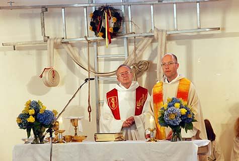 Ein Festakt und Ehrungen kennzeichneten nun am 18. September 2011 den zweiten Teil. Begonnen wurde der Festakt im Gemeindesaal in Gaaden mit einem Festgottesdienst, zelebriert durch die beiden Feuerwehrkuraten Pater Walter und Pater Kosmas. Dabei wurde Pater Walter verabschiedet. Als Abschiedsgeschenk überreichte ihm das Kommando der Feuerwehr Gaaden einen heiligen Florian.