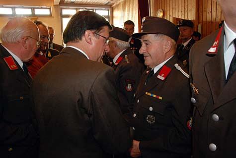 Im Anschluss an die heilige Messe konnte Bezirksfeuerwehrkommandant Landesfeuerwehrrat Ing. Richard Feischl eine Vielzahl von Ehrengästen begrüßen - unter ihnen der örtliche Bürgermeister Rainer Schramm, LAbg. Bgm. Hans Stefan Hintner sowie zahlreiche weitere Vertreter der Politik.