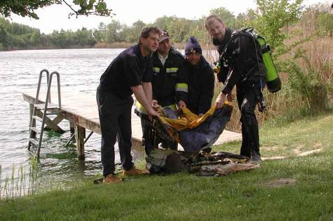 Umweltschutz gehört heute zu den wichtigsten Aufgaben der Feuerwehr. Kaum ein Einsatz, bei dem es nicht darum geht, Gefahren nicht nur für Mensch und Tier, sondern vor allem auch für Natur und Umwelt abzuwenden. Zu Lande ist diese Arbeit der Feuerwehr zur Selbstverständlichkeit geworden. Doch auch zu Wasser werden die ehrenamtlichen Helfer ihren freiwillig übernommenen Pflichten gerecht: am Pfingstsamstag säuberten Feuerwehrtaucher den Badeteich „Ozean“.