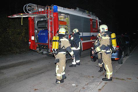 Noch während der Anfahrt der Feuerwehr Einsatzfahrzeuge versuchte der Hausbesitzer mittels zwei Handfeuerlöschern den Brand unter Kontrolle zu halten.