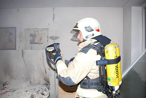 Nach dem Eintreffen des ersten Tanklöschfahrzeuges begab sich Einsatzleiter FT Ing. Florian Berger zur Erkundung in das Hausinnere.