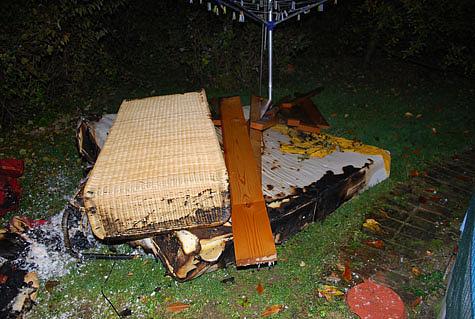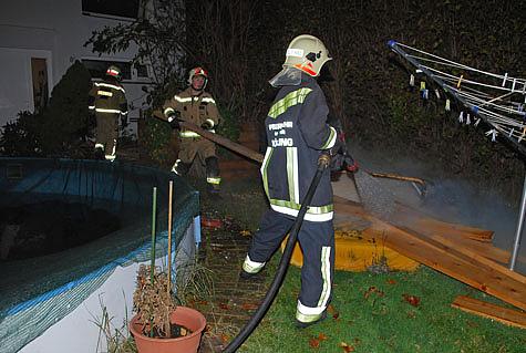Ein weiterer Trupp legte ein Rohr um das Haus in den Garten und löschte die glosenden Möbel.