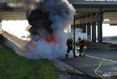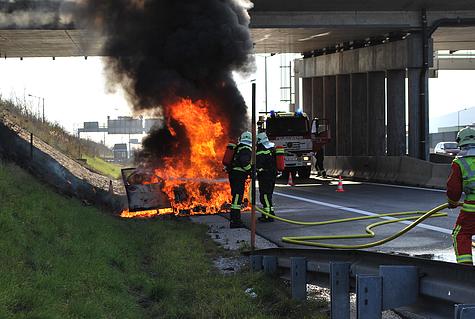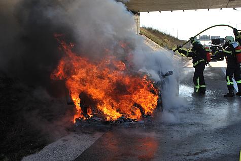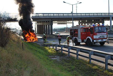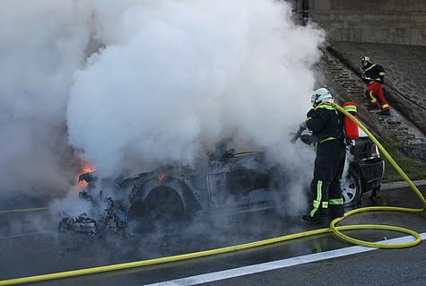 Mehrere Anzeigen gelangten kurz vor 13 Uhr per Feuerwehrnotruf in der Bezirksalarmzentrale ein - ein BMW stehe auf der Südautobahn im Vollbrand.