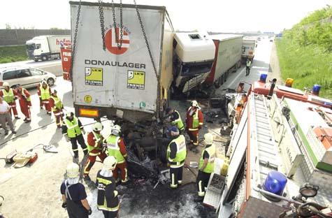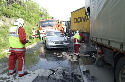 Die weiteren Bergungs- und Aufräumungsarbeiten nahmen mehrere Stunden in Anspruch. Größere Mengen ausgeflossenen Treibstoffs waren zu binden. In den Unfall verwickelt war auch ein mit Säure beladener Gefahrguttransporter, es kam jedoch zu keinem Schadstoffaustritt.