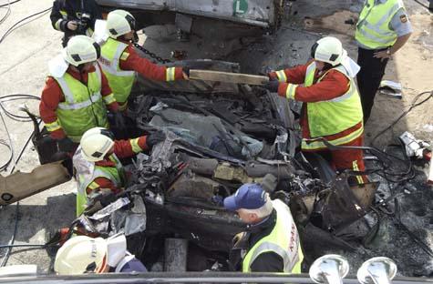 Um 8.44 Uhr langte der Notruf in der Feuerwehr-Bezirksalarmzentrale Mödling ein, die Feuerwehr Wiener Neudorf wurde zum Einsatz alarmiert. Den eintreffenden Fahrzeugen bot sich ein Bild der Verwüstung. Die Feuerwehr Mödling wurde mit dem Kran, Kranbegleit- und Rüstlöschfahrzeug zur Unterstützung angefordert. Der Lenker des Mercedes und zwei Lkw-Lenker mussten mit hydraulischen Rettungsgeräten aus den zertrümmerten Fahrzeugen befreit werden. Die Bergung des regelrecht zermalmten Pkws war nur mit Hilfe des Krans möglich. Zunächst musste der aufgefahrene Lkw mit der Kranseilwinde nach hinten weggezogen werden. Erst danach war es in einem zweiten Schritt möglich, den Sattelaufleger mit dem Kran anzuheben und den Pkw mit Hilfe der Seilwinde eines Rüstlöschfahrzeuges herauszuziehen und die getötete Lenkerin zu bergen.