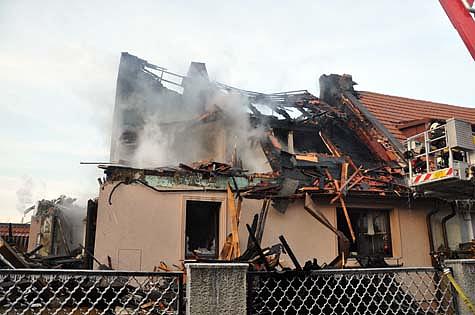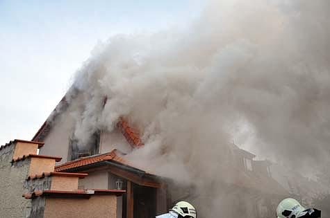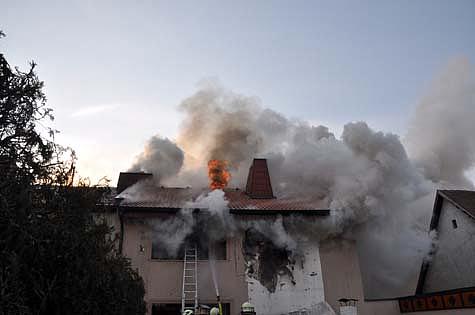 Durch den innerhalb der Holzriegelwände fortgeschrittenen Brandverlauf kam es zu einer Durchzündung, welche den Dachstuhl zur Gänze erfasste.