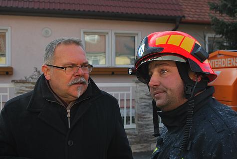Weiters standen Bürgermeister Ing. Christian Wöhrleitner , der Statiker der Gemeinde, der Bezirksfeuerwehrkommandant Ing. Richard Feischl, Mitarbeiter von Wien Strom und Wien Energie sowie zwei Rettungsfahrzeuge des Roten Kreuzes unter Landesrettungsrat Paul Strebl die gesamte Einsatzdauer vor Ort. Große Unterstützung kam vom Bauhof der Gemeinde Wiener Neudorf, welcher die Streuung der vereisten Straßen und Gehwege durchführte.