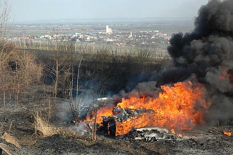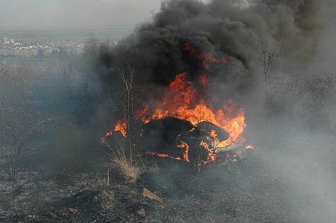 Die Rauchsäule war für die Einsatzkräfte bei der Anfahrt über einige Kilometer zu sehen. Beim Eintreffen der Feuerwehr standen das Fahrzeug sowie zirka 500 m² des Feldes im Vollbrand.