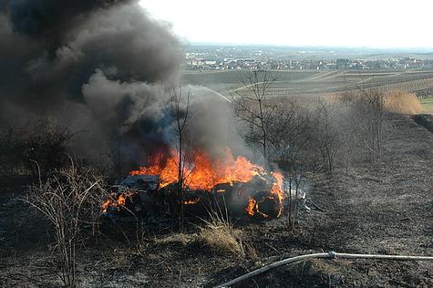 Einsatzleiter LM Martin Radelwimmer entschied daher, die Brandbekämpfung in der Erstphase auf das Feld zu konzentrieren, da sich das Feuer rasend schnell ausbreitete und der PKW nicht mehr zu retten war.