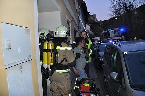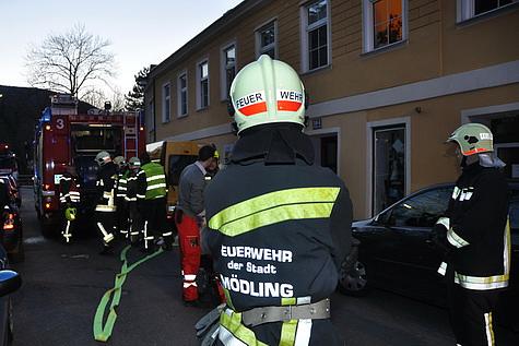 Ein aufmerksamer Nachbar bemerkte die Rauchentwicklung im Stiegenhaus sowie aus einem im ersten Obergeschoss Richtung Straße geöffneten Fenster, und wählte den Feuerwehr Notruf 122. Die Bezirksalarmzentrale alarmierte daraufhin die Freiwillige Feuerwehr Mödling zum Zimmerbrand. Fast zeitgleich trafen das erste Tanklöschfahrzeug sowie der Steig am Einsatzort ein. Von den bereits vor dem Haus befindlichen Mietern konnte nicht ausgeschlossen werden, ob sich noch Personen in der Wohnung befinden. Sofort wurde ein Atemschutztrupp mit C – Löschleitung und Wärmebildkamera zur Menschenrettung in die betroffene Wohnung geschickt. Durch das zweite an der Einsatzstelle angekommene Tanklöschfahrzeug wurde parallel dazu ein weiterer Atemschutztrupp über eine tragbare Leiter zur Menschenrettung entsandt. Des weiteren wurde die Energieversorgung zur Wohnung unterbrochen. Wenige Augenblicke später meldeten die eingesetzten Atemschutztrupps „Brand Aus“ sowie eine in der Wohnung aufgefundene Person. Rasch wurde der Mann aus der stark verrauchten Wohnung gebracht und dem Rettungsdienst zur weiteren Versorgung übergeben. Nach der erfolgreichen Menschenrettung wurde damit begonnen, die angrenzenden Wohnungen und den Dachboden zu kontrollieren. Um den giftigen Rauch rasch aus der Brandwohnung zu bekommen, setzten die Einsatzkräfte einen Druckbelüfter ein. Die getroffenen Maßnahmen zeigten schnell Wirkung, und die Wohnung konnte zur Ermittlung der Brandursache von der Polizei betreten werden. Bereits vor Ort stellten die Kräfte der Feuerwehr wieder ihre Einsatzbereitschaft her und rückten nach etwas mehr als einer Stunde mit sechs Fahrzeugen wieder ins Feuerwehrhaus ein.Bildautor: Lukas Derkits/Pressestelle BFK Mödling