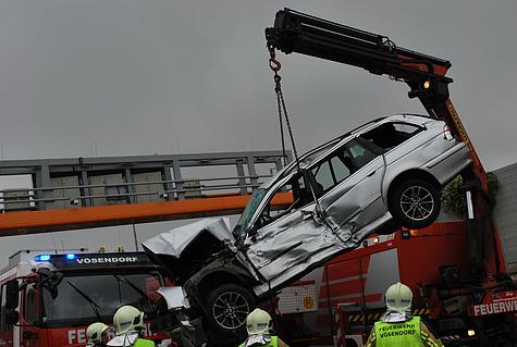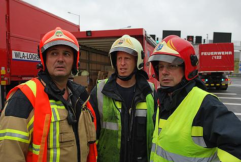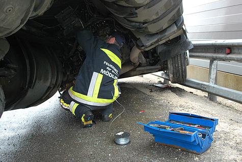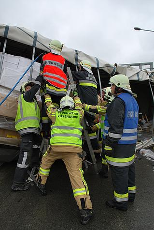 Aus bisher ungeklärter Ursache kam es am 25. Juli 2012 kurz vor dem S1 Tunnel Vösendorf zu einem schweren Verkehrsunfall zwischen einem Sattelzugfahrzeug und einem PKW. Der LKW kippte dabei quer über alle Fahrstreifen um. Das Auto blieb in der Leitschiene stecken. Um 9.51 alarmierte die Bezirksalarmzentrale die Feuerwehr Vösendorf zu der Autobahnbergung. Nach dem Eintreffen und der Erkundung durch den Einsatzleiter forderte dieser sofort das Kranfahrzeug der Feuerwehr Mödling an. Die S1 musste daher für den gesamten Verkehr, von der A21 kommend, gesperrt werden. Weiters wurden die Feuerwehren Wiener Neudorf und Hennersdorf nachalarmiert. Die Feuerwehrmänner waren bei strömendem Regen stundenlang mit dem Entladen des LKWs beschäftigt. Dieser hatte Mischgut mit Elektrowaren geladen. Dabei mussten die Verstrebungen des LKWs mit einem Akku-Kombispreizer entfernt werden. Parallel dazu barg die Feuerwehr Vösendorf den am Unfall beteiligten PKW. Der Lenker wurde zur Untersuchung ins Krankenhaus eingeliefert. An seinem Fahrzeug entstand Totalschaden. Um die 14 Tonnen Ladegut aus dem LKW zu bergen und anschließend von der Autobahn zu entfernen forderte die Einsatzleitung vier Feuerwehr-Wechselladerfahrzeuge mit geschlossenen Leermulden an. Diese wurden von den Feuerwehren Mödling, Traiskirchen-Möllersdorf und Traiskirchen entsendet. Der Feuerwehr-Gabelstapler aus Wiener Neudorf unterstützte dabei den Umladevorgang erheblich. Anschließend wurde das umgestürzte Fahrzeug mittels Kran Mödling aufgestellt. Nach dem Abhängen der Kardanwelle konnte der verunglückte LKW durch die Feuerwehr von der Autobahn entfernt werden. Die ASFINAG reinigte die Fahrbahn. Aufgrund der Dimension dieses Einsatzes und des großen logistischen Aufwandes überzeugte sich Bezirksfeuerwehrkommandant LFR Ing. Richard Feischl vor Ort von der hervoragenden Zusammenarbeit der sechs eingesetzten Feuerwehren aus zwei Bezirken. Nach 5,5 Stunden konnten die sechs eingesetzten Feuerwehren wieder einrücken und die S1 durch die Autobahnpolizei wieder freigegeben werden. Parallel zu dieser LKW Bergung auf der S1 mussten die Feuerwehren Hennersdorf, Biedermannsdorf, Brunn am Gebirge, Breitenfurt, Gumpoldskirchen und Wiener Neudorf zahlreiche weitere Einsätze wegen dem starken Regen abarbeiten.