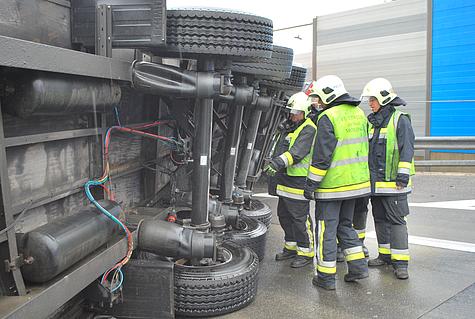 28 Tonnen Sattelzugfahrzeug nach Verkehrsunfall umgestürzt