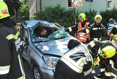 Mit diesem wurde das Dach von innen weggedrückt. Anschließend konnte die verletzte Frau über die Frontscheibenöffnung aus dem Unfallauto befreit und dem Roten Kreuz übergeben werden.