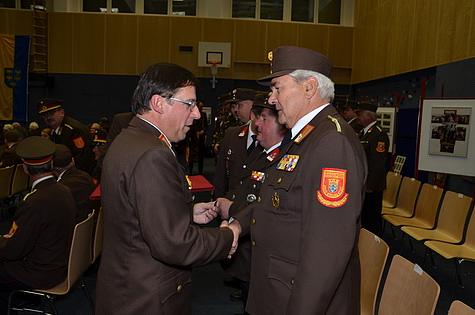 Nach einem multimedialen Rückblick von V DI (FH) Michael Zwach wurden langjährige und verdiente Feuerwehrkameraden geehrt. Diese Ehrungen sind zentraler Bestandteil des eindrucksvollen Festakts.