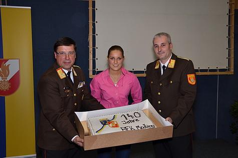 Danach lud die Moderatorin Marlene Beck zu einer Interviewrunde ein. Bürgermeister LAbg. Hans Stefan Hintner, NR Hannes Weniger und BH Dr. Philipp Enzinger sowie Vertreter der Feuerwehr sprachen über 140 Jahre BFKDO Mödling sowie 40 Jahre Feuerwehrjugend.