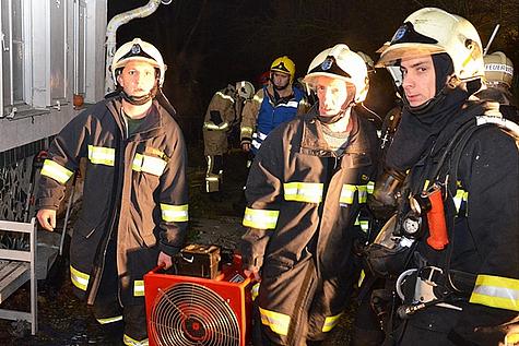 Auch der Dachbereich musste teilweise geöffnet und anschließend untersucht werden. Mittels Ringlüfter konnte das Gebäude vom Rauch befreit werden.