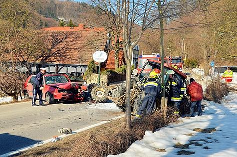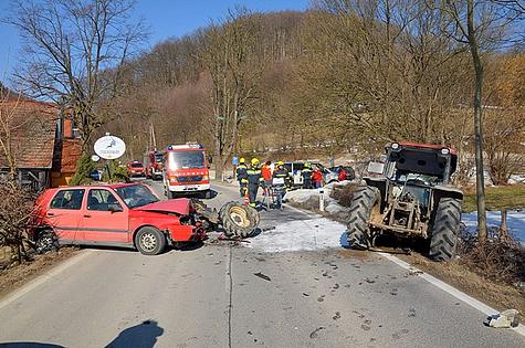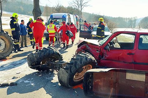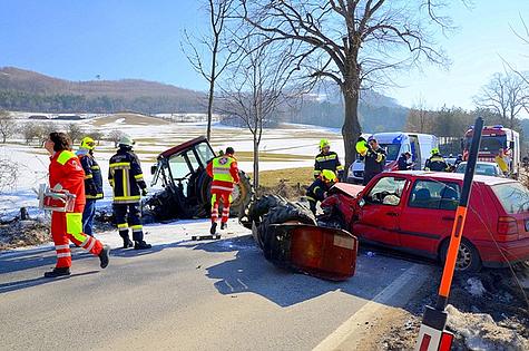 Schwerer Verkehrsunfall mit einem Traktor und PKW