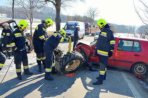 Eine 23jährige Lenkerin verlor aus bislang ungeklärten Umständen die Herrschaft über ihren VW Golf und prallte mit voller Wucht mit einem entgegenkommenden Traktor zusammen. Der Aufprall war so heftig, dass die Vorderachse des Traktors ausgerissen wurde.