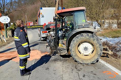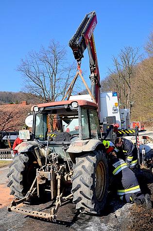 Der 48jährige Traktorlenker konnte sich aus eigener Kraft aus seinem Traktor befreien. Beim Eintreffen der Einsatzkräfte wurde sofort ein Brandschutz aufgebaut und die Fahrbahn für den nachkommenden Verkehr gesichert.