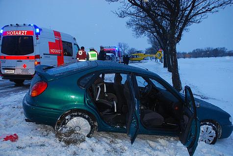 Als das erste Feuerwehrfahrzeug die Einsatzstelle auf der Autobahn verließ, kamen die Feuerwehrmänner bei der Rückfahrt zu einem schweren Verkehrsunfall auf der Laxenburgerstraße dazu. Ein PKW prallte seitlich gegen einen Baum.