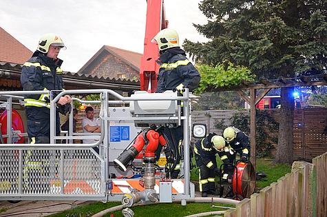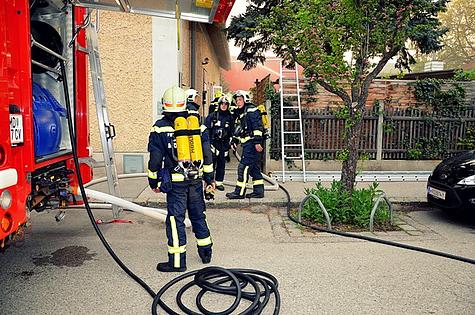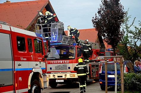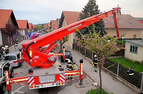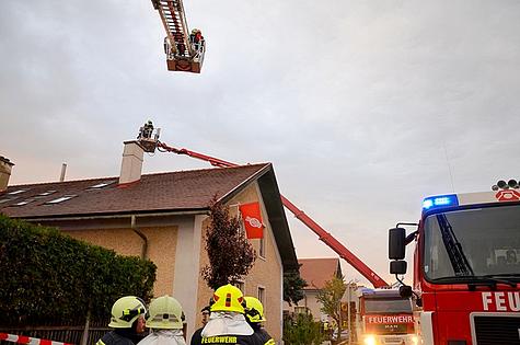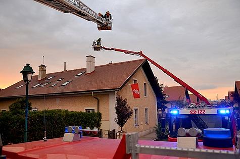 Beim Eintreffen der ersten Feuerwehreinsatzkräfte drangen bereits Flammen aus dem Dachstuhl. Die Feuerwehr Wiener Neudorf wurde daher nachalarmiert.