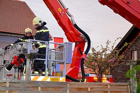 Über den Feuerwehr-Notruf zeigte eine Person an, dass Rauch und Flammen aus dem Dach seines Nachbargrundstückes austreten.